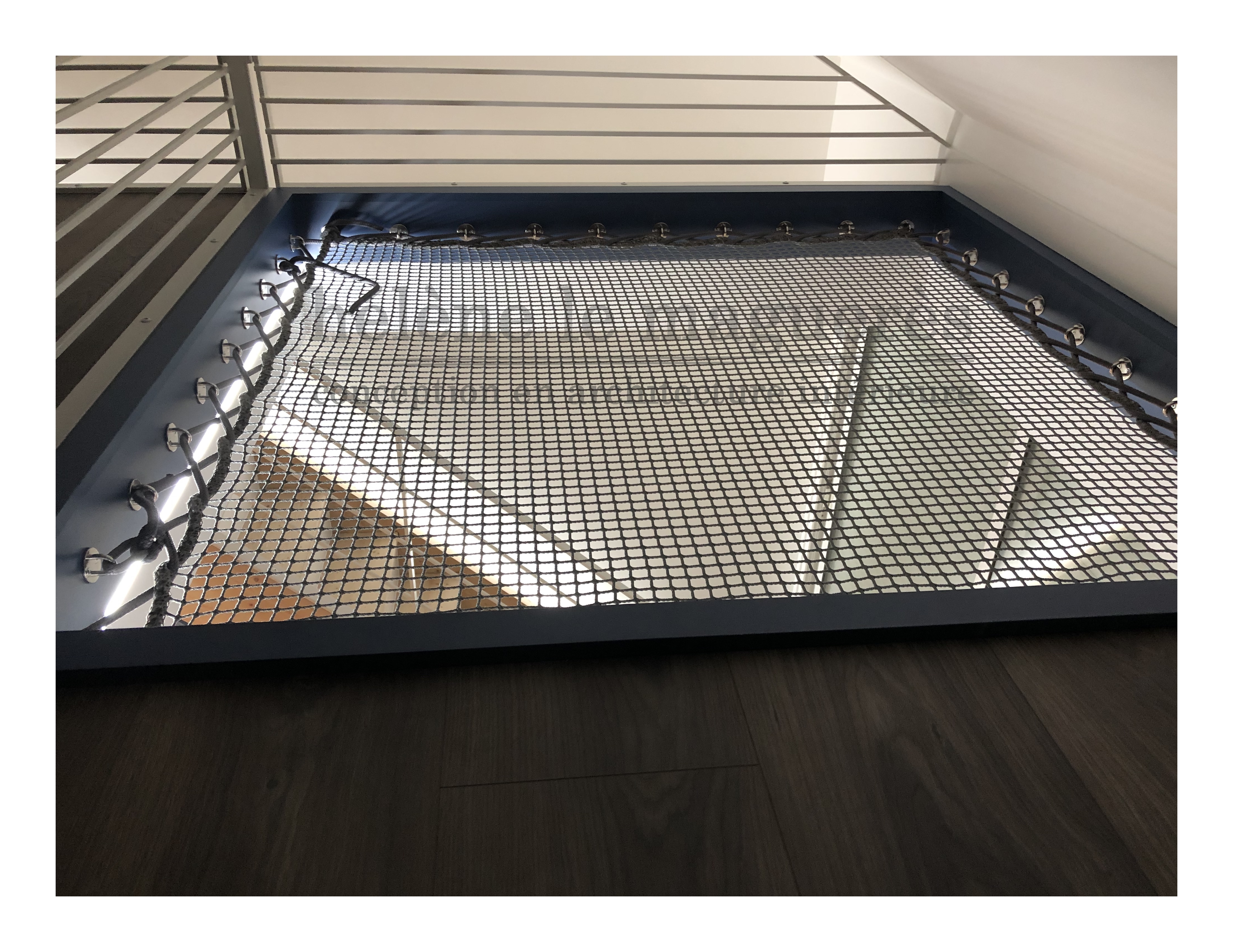 Sur la mezzanine créée, un filet type Catamaran très confortable habille un petit vide sur séjour promettant de bons moments de détente !