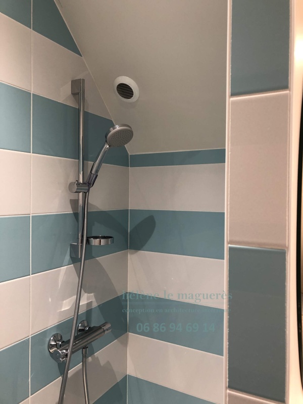 Les choix de couleur et ce carrelage en 60×60 agrandissent les volumes rénovés.